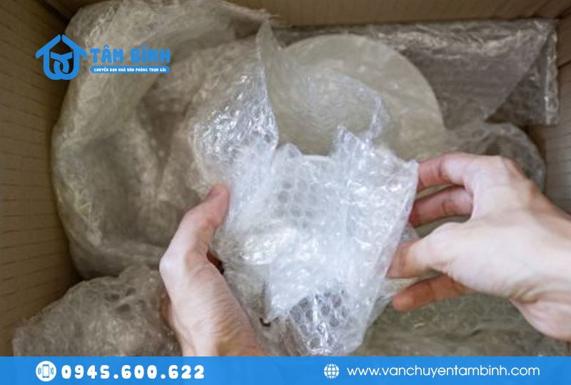 • Màng co (pe), xốp nổ, giấy bản: Vận chuyển Tâm Bình thường dùng giấy bìa dạng bản hoặc giấy báo để bọc từng món đồ nhỏ nhất là đồ dễ vỡ như bán đũa, đồ thủy tinh trước khi xếp chúng vào thùng.